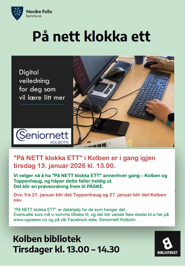 Seniornett Kolbotn er et samarbeid mellom Kolben bibliotek, Senior Fritid, Seniornett Norge, Pensjonistforbundet og Frivilligsentralen.